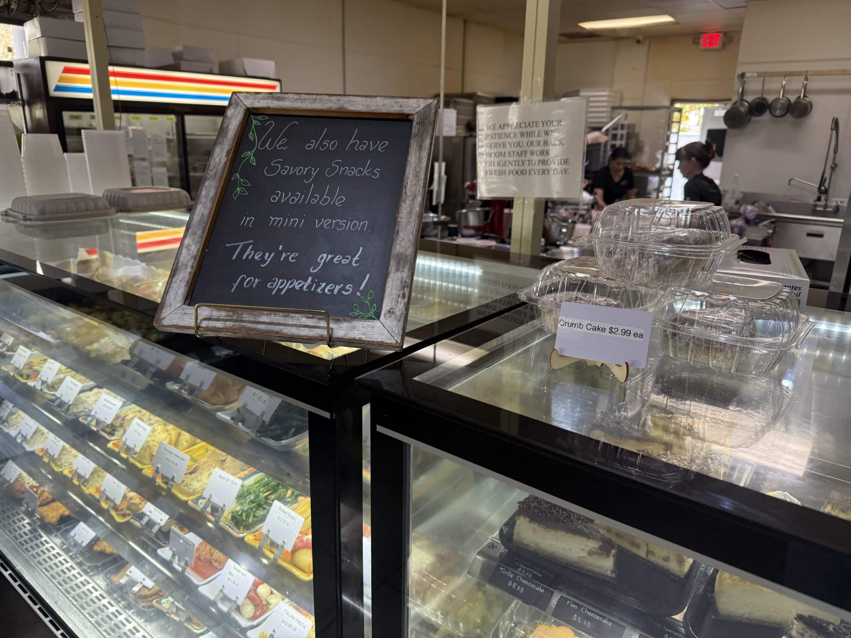 The prepared food case is filled daily with options such as: